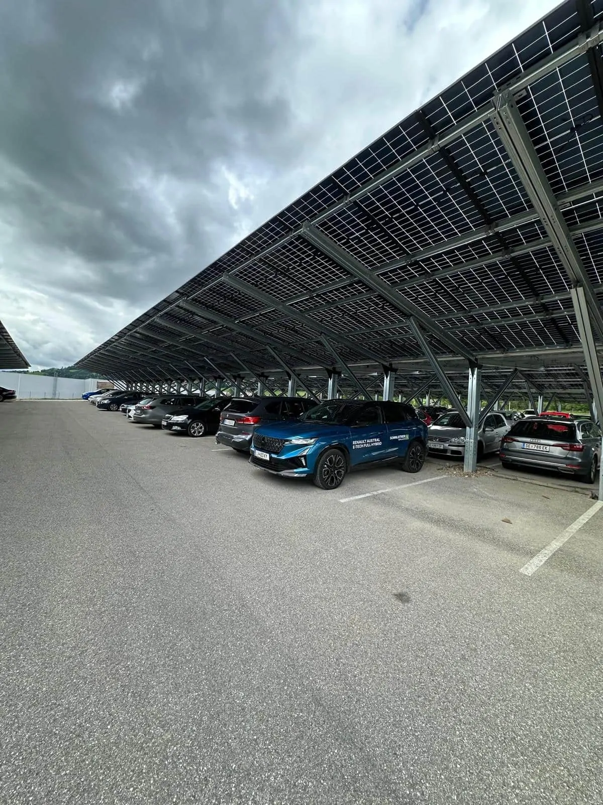 Das Ergebnis ist ein moderner Photovoltaik-Carport, der Schutz für Fahrzeuge, Komfort für Nutzer und eine kontinuierliche Quelle sauberer Energie bietet. Die Konstruktion erfüllt nicht nur funktionale und energetische Ansprüche, sondern wurde auch als architektonisches Gestaltungselement entwickelt, das die visuelle Identität des Areals stärkt und die Innovationskraft des Betreibers unterstreicht.